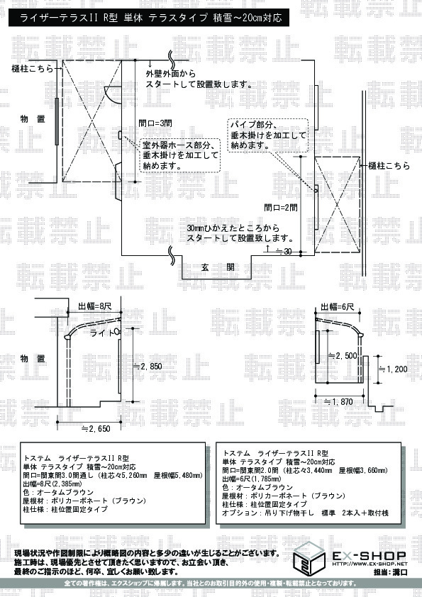 サイズ | 屋根幅 5,480mm 出幅 2,385mm |