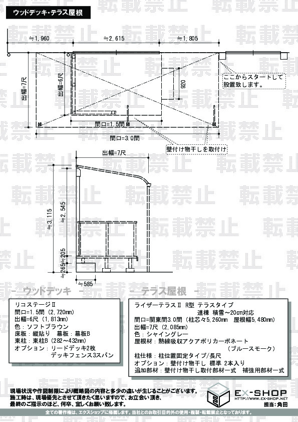 再度弊社を信頼頂けお選び頂いたこと、大変嬉しく存じます。ウッドデッキには、リードデッキとデッキフェンスをオプションで付けさせていただきましたが、使われてみて如何でしょうか?並べる形で、テラス屋根の施工もさせていただきましたが、お客様のご自宅の外観を損なうことなく、施工できましたこと大変嬉しく存じます。今後も絶えず企業努力を続け、更にお客様にご満足いただけるサービスを目指すよう、努めてまいります。また機会がございましたら、ぜひエクスショップをご利用頂けますよう、宜しくお願い致します。