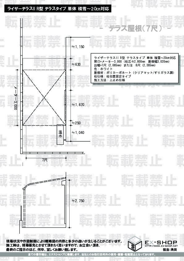 サイズ | 屋根幅 3,020mm 出幅 2,085mm |