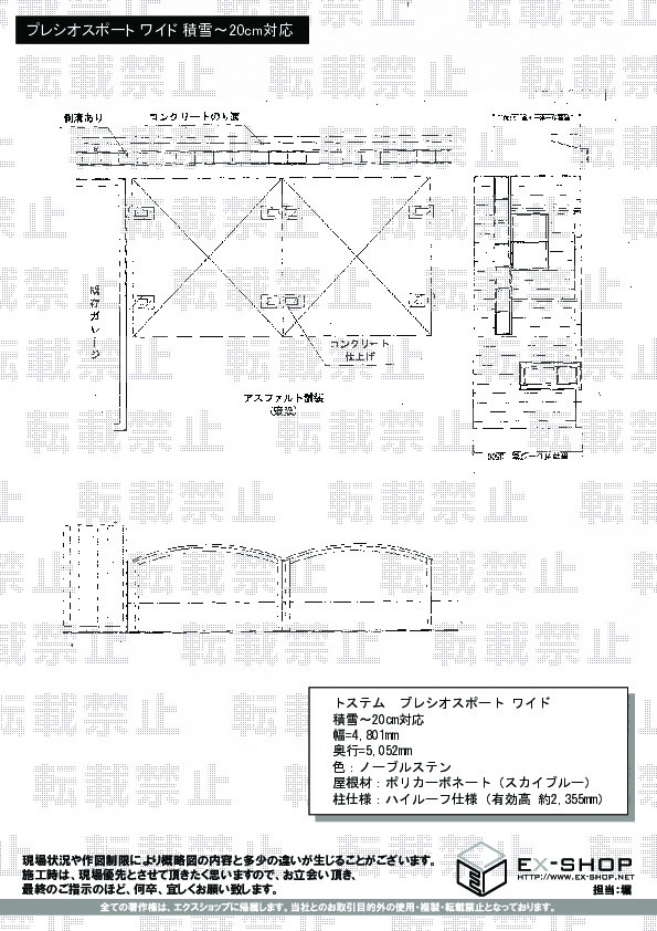 | 屋根材等 | ポリカーボネート(スカイブルー) |