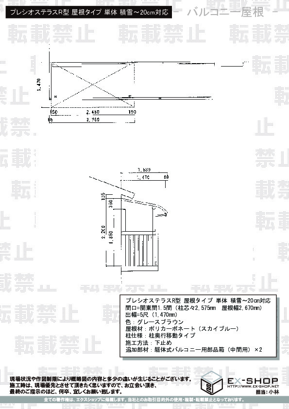 | サイズ | 屋根幅 2,670mm 出幅 1,470mm |