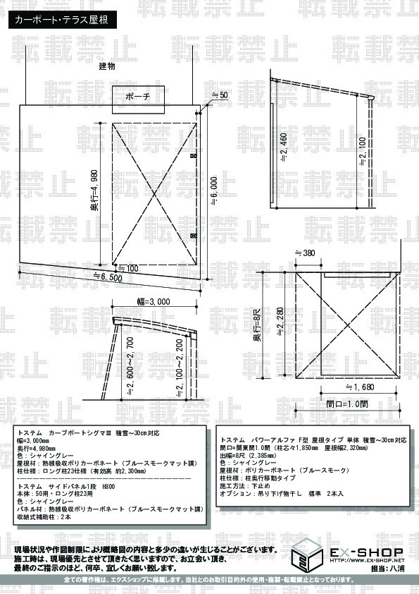 | サイズ | 屋根幅 2,320mm 出幅 2,385mm |