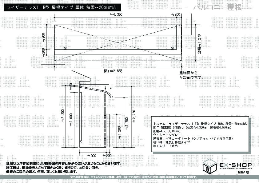 サイズ | 屋根幅 4,570mm 出幅 1,185mm |