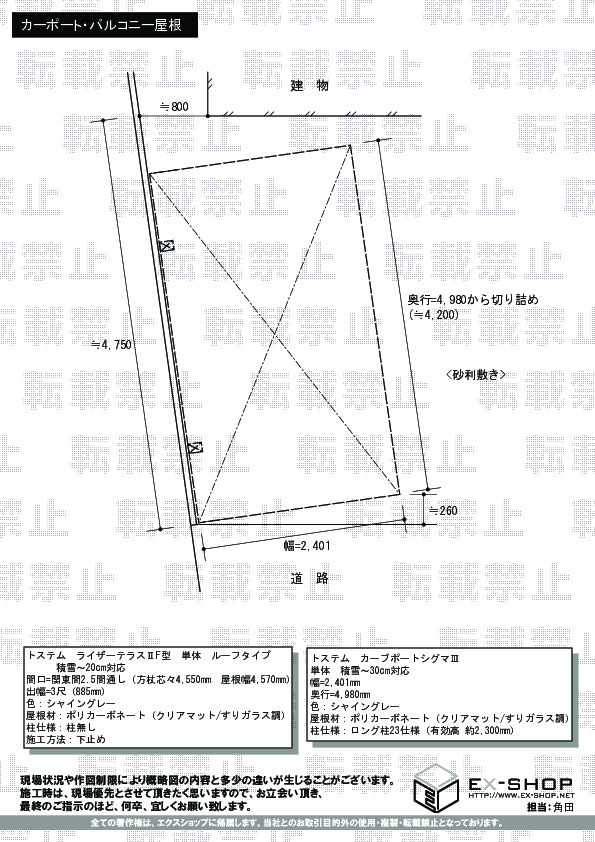 | サイズ | 屋根幅 4,570mm 出幅 885mm |