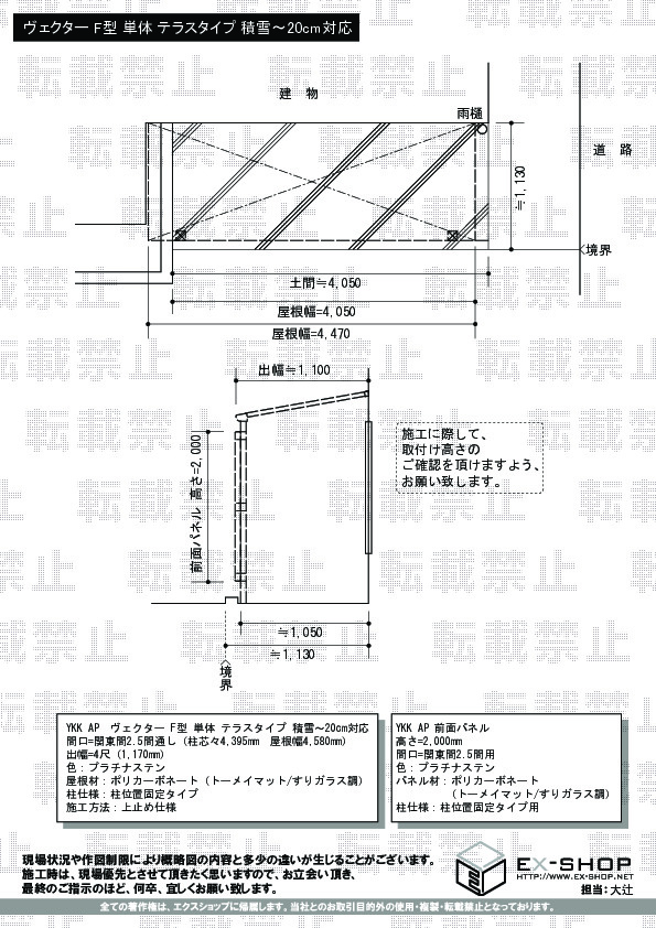 サイズ | 屋根幅 4,580mm 間口 1,170mm |
