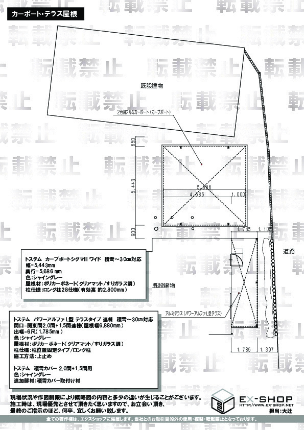 サイズ | 屋根幅 6,880mm 出幅 1,785mm |