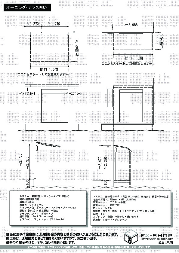 | サイズ | 間口 2,730mm 出幅 1,785mm |