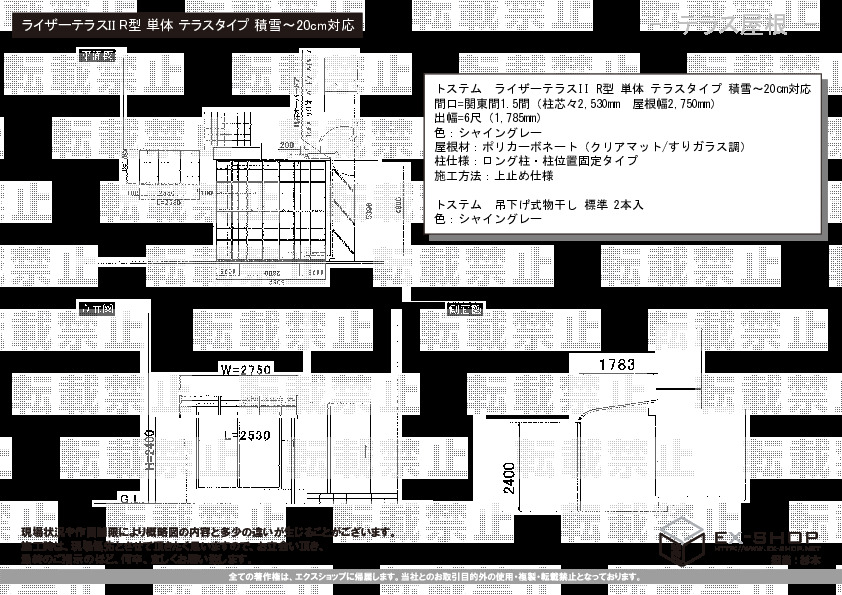 サイズ | 屋根幅 2,750mm 出幅 1,785mm |