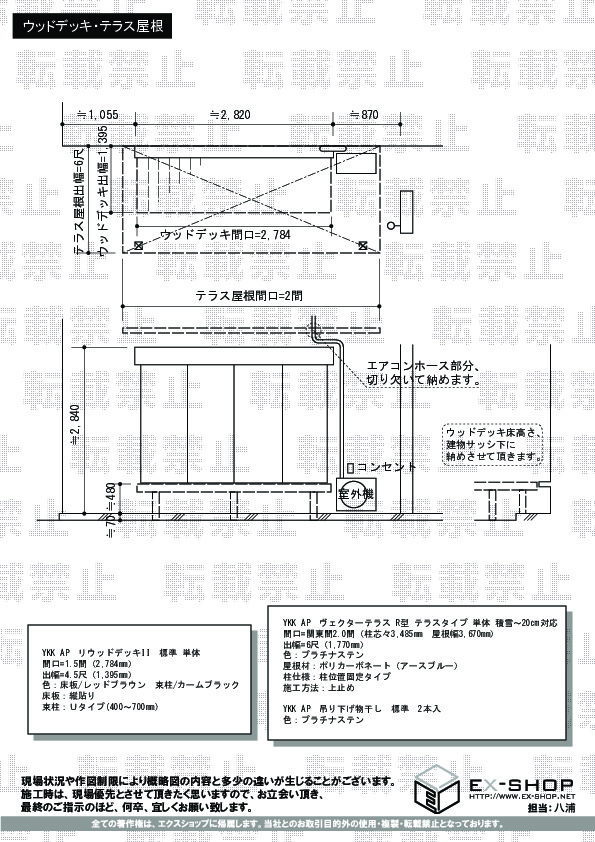 | サイズ | 屋根幅 3,670mm 出幅 1,770mm |