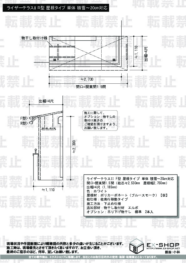 サイズ | 屋根幅 2,750mm 出幅 1,185mm |