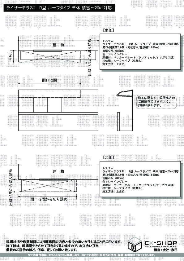 サイズ | 屋根幅 3,660mm 出幅 885mm |