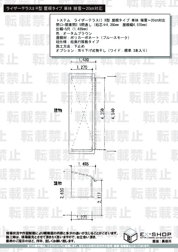 サイズ | 屋根幅 4,570mm 出幅 1,485mm |