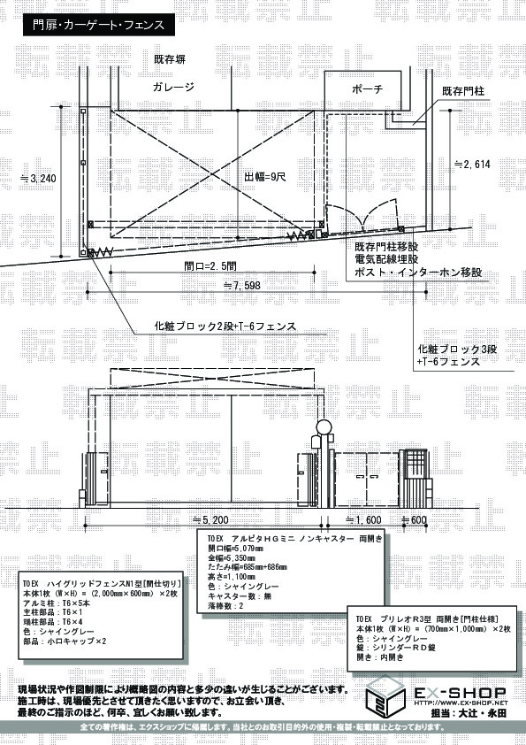 老朽化でゲートが閉まらなくなりエクスショップさんに施工をお願いしましたネットショップなので施工や施工後の対応が心配でしたが、施工後に不具合がありましたがとても丁寧に即日対応していただきありがとうございました。また機会があれば利用させていただきます。