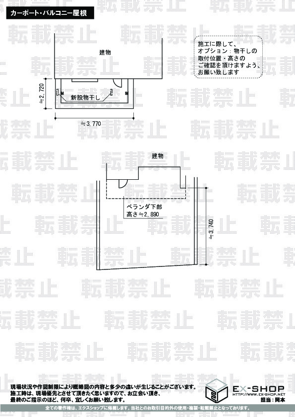 | サイズ | 屋根幅 3,660mm 出幅 |
