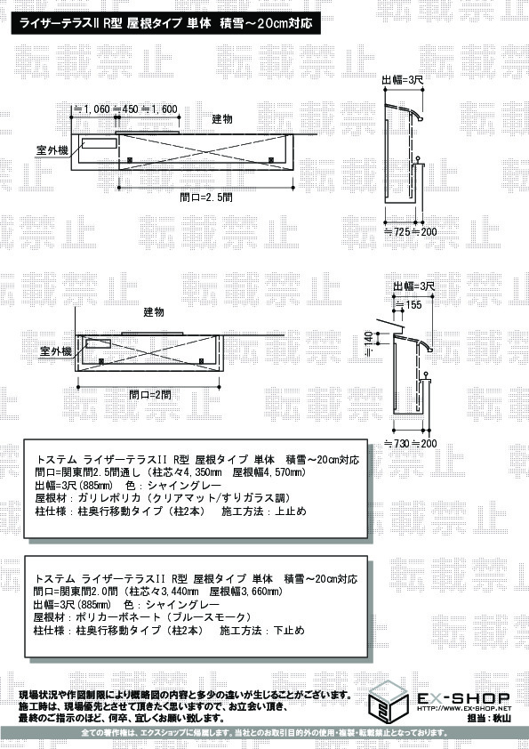 サイズ | 屋根幅 3,660mm 出幅 885mm |