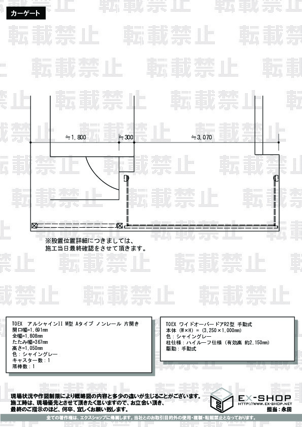 TOEX ワイドオーバードアR1型 ハイルーフ電動タイプ 5400x1000