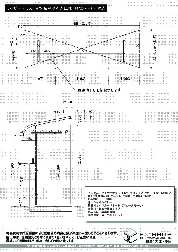 | サイズ | 屋根幅 3,660mm 出幅 1,185mm |
