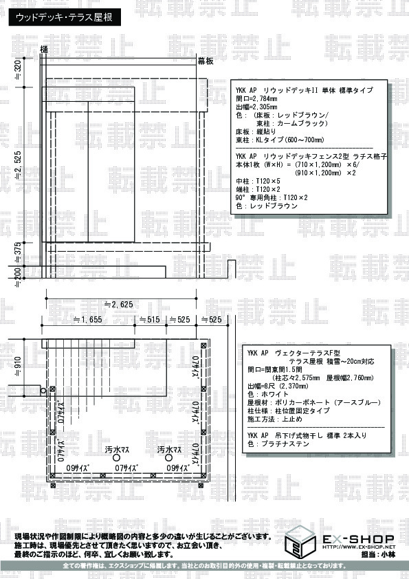 サイズ | 屋根幅 2,760mm 出幅 2,370mm |