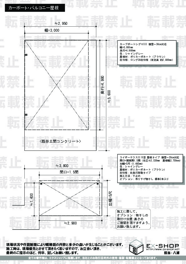 サイズ | 屋根幅 2,750mm 出幅 1,485mm |