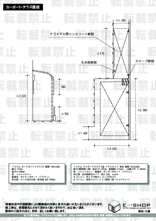 サイズ | 屋根幅 4,570mm 出幅 1,485mm |