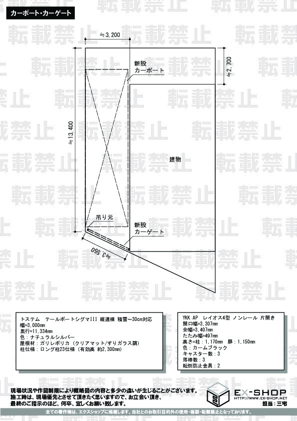 カーポートとカーゲートの交換をしたいのですが、どのような商品が最適か提案をいただきたく、調査と打合せをお願いいたします。