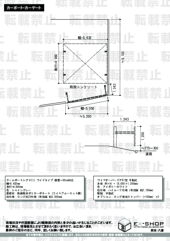 TOEX ワイドオーバードアR1型 ハイルーフ電動タイプ 5400x1000