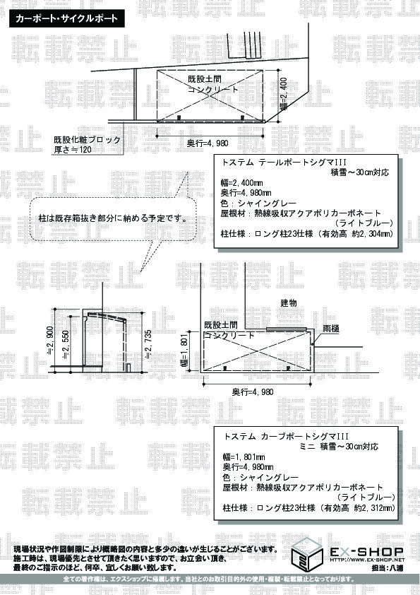 | 屋根高等 | ロング柱23仕様(有効高 約2,304mm) |