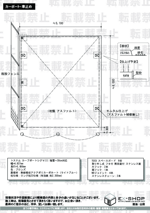 カーポートとカーゲートの交換をしたいのですが、どのような商品が最適か提案をいただきたく、調査と打合せをお願いいたします。