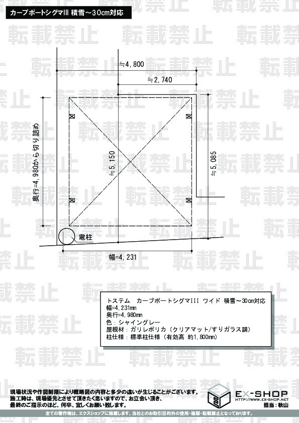 | 屋根高等 | 標準柱仕様(有効高 約1,812mm) |