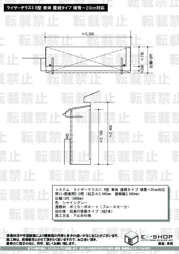 | サイズ | 屋根幅 3,660mm 出幅 885mm |