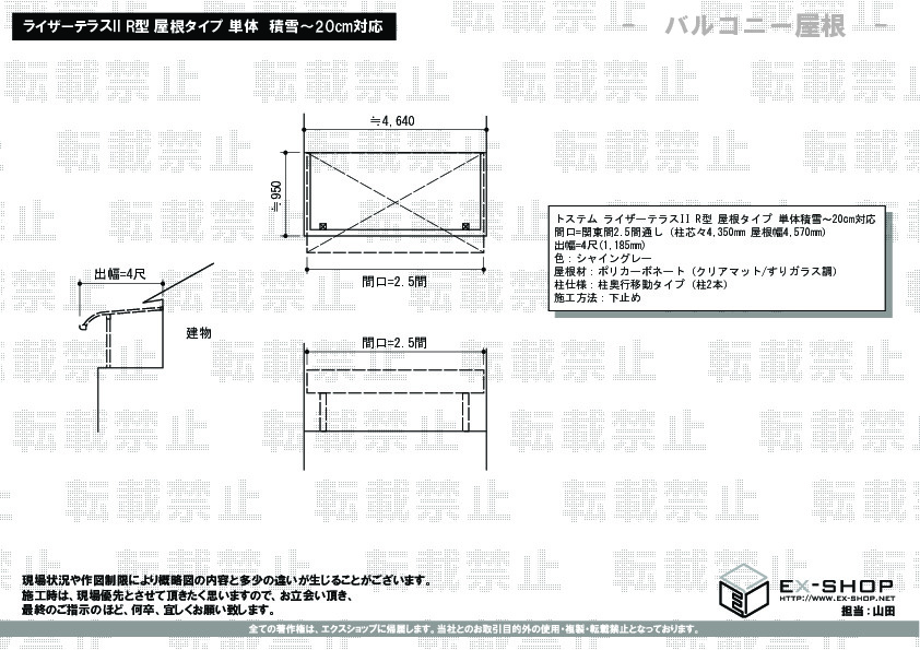 サイズ | 屋根幅 4,570mm 出幅 1,185mm |