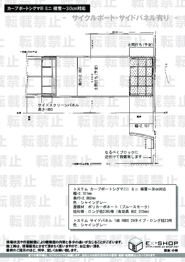 新築住宅の外構工事としてカーポートとサイクルポートを今回依頼させていただきました。価格・メーカー施工・保証の3点が当方希望にマッチしていたことが主な理由です。ネットショップということで要望等をうまく伝達できるか少し不安でしたが、メール・電話で丁寧に対応いただき全く問題ありませんでした。商品の施工・仕上がりにも非常に満足しています。サイクルポートに関しては玄関前への設置ということで標準柱/ロング柱でどちらにするか悩みましたが、最終的にロング柱とサイドパネル(1段)を組み合わせることでいい感じになったと思います。ホームページに掲載されている工事実績がとても参考になりました。ありがとうございました。