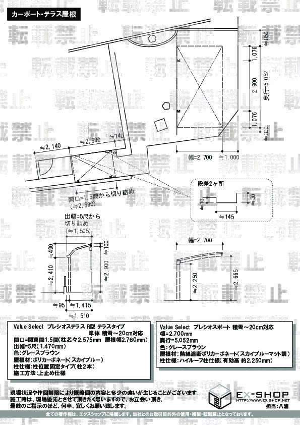 | サイズ | 屋根幅 2,760mm 出幅 1,470mm |
