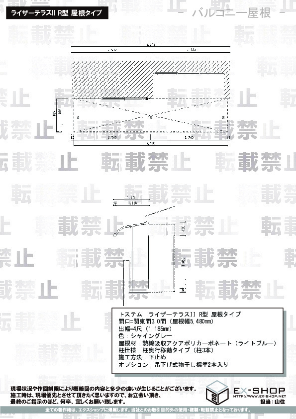 サイズ | 屋根幅 5,480mm 出幅 1,185mm |