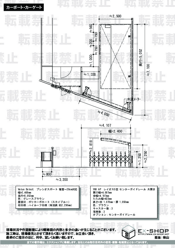 カーポートとカーゲートの交換をしたいのですが、どのような商品が最適か提案をいただきたく、調査と打合せをお願いいたします。