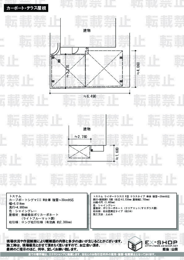 | サイズ | 屋根幅 2,750mm 出幅 1,485mm |
