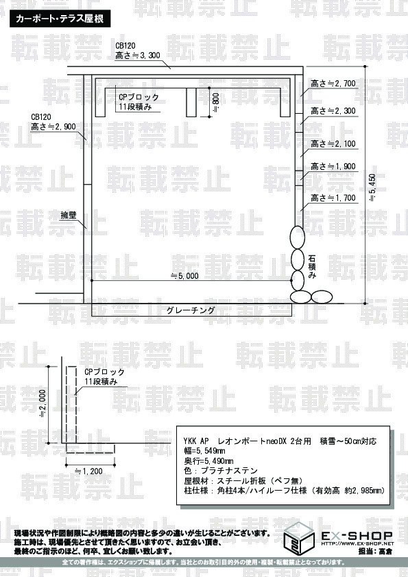 この度はエクスショップをご利用頂きまして、誠に有難うございます。大きなお車にピッタリのレオンポートneoDXですね。またヴェクターテラスはフラットな屋根形状が、とてもスタイリッシュで素敵ですね。施工の際、お客様にお手数をお掛けしまして、申し訳ございませんでした。今後は現場調査の精度を上げ、スムーズに施工に取り掛かれるよう努力して参ります。また機会がございましたら、弊社をご利用頂けますよう宜しくお願い致します。