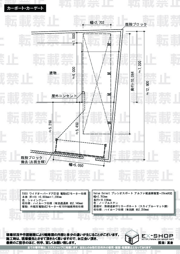 TOEX ワイドオーバードアR1型 ハイルーフ電動タイプ 5400x1000