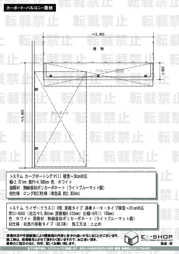 | サイズ | 屋根幅 6,020mm 出幅 1,185mm |