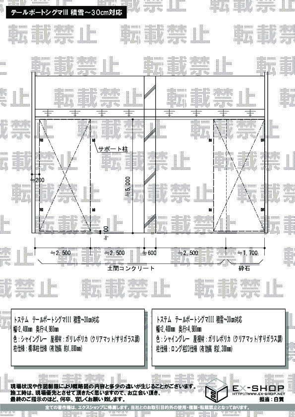 屋根高等 | ロング柱23仕様(有効高 約2,300mm) |