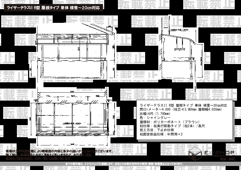 | サイズ | 屋根幅 4,020mm 出幅 1,785mm |