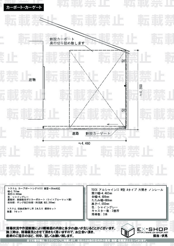 カーポートとカーゲートの交換をしたいのですが、どのような商品が最適か提案をいただきたく、調査と打合せをお願いいたします。