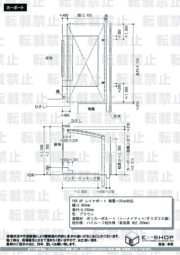 この度は、レイナポートの施工ご依頼を頂き誠に有難うございます。施工士並びにスタッフへの素敵なお言葉をお寄せ頂き、大変嬉しく存じます。落ち着いたブラウンのフレームにトーメイマット/すりガラス調の屋根材がマッチし、すっきりとしたお仕上がりでございますね。顔の見えないネットショッピングではありますが、お客様に出来るだけご満足して頂きたいとの思いで、日々精進しておりますので、このようなお言葉を頂き、大変光栄でございます。今後も、エクステリアを通じてお客様に笑顔をお届けできます様、日々精進して参りますのでまた機会がございましたら是非、エクスショップをご利用下さいます様、宜しくお願い致します。