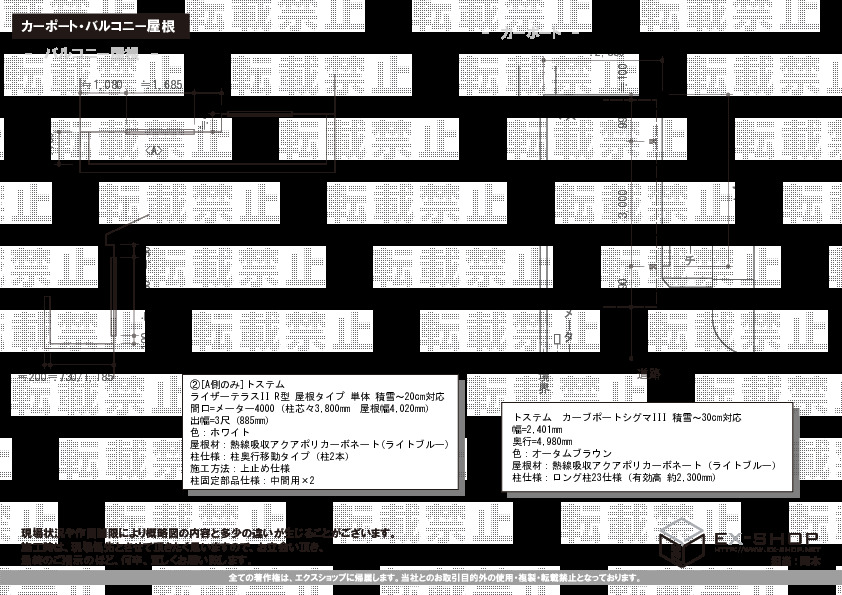 | サイズ | 屋根幅 4,020mm 出幅 885mm |