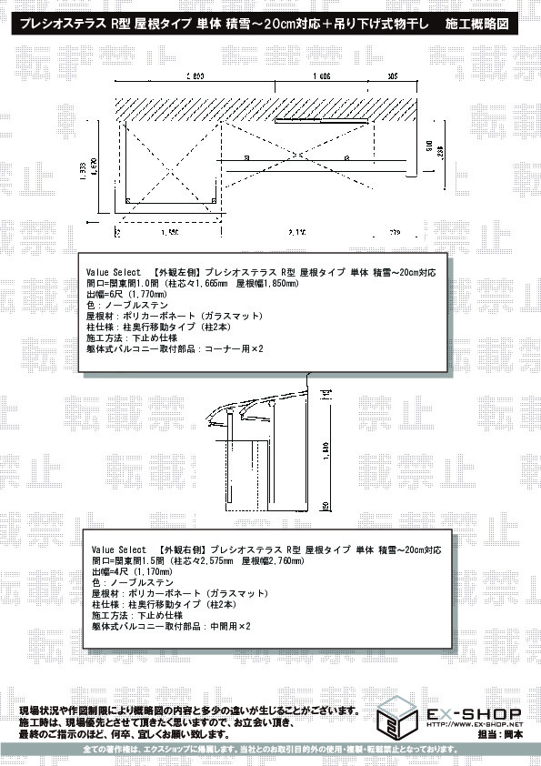 | サイズ | 間口 2,760mm 出幅 1,170mm |