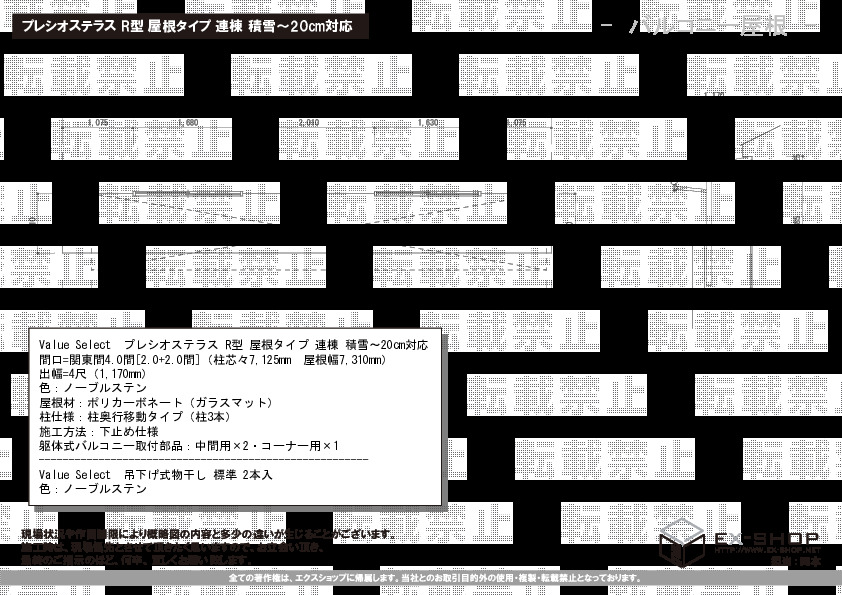 | サイズ | 屋根幅 7,310mm 出幅 1,170mm |