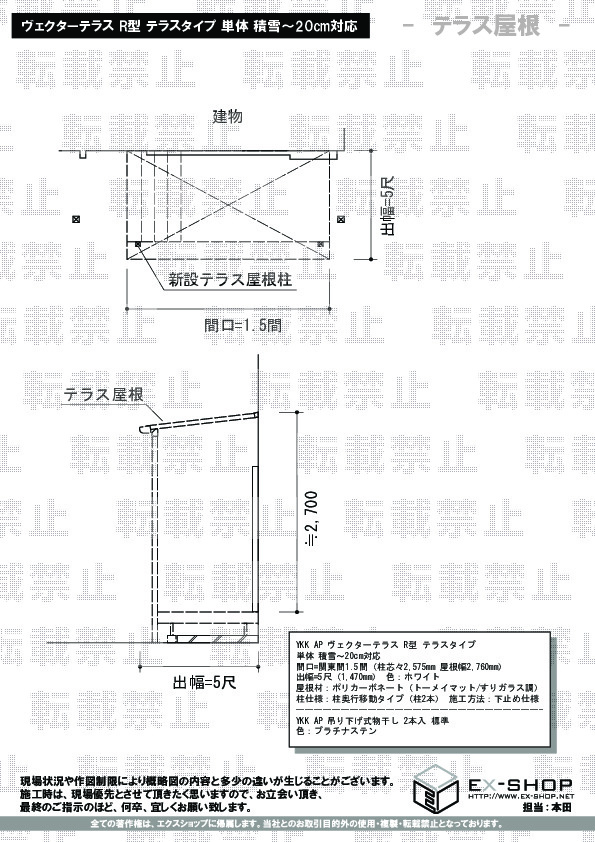 サイズ | 屋根幅 2,760mm 出幅 1,470mm |