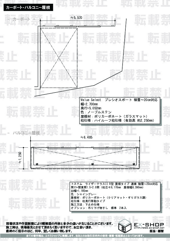 | サイズ | 屋根幅 6,390mm 出幅 1,185mm |
