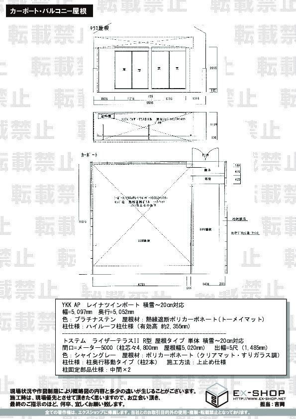 | サイズ | 屋根幅 5,020mm 出幅 1,485mm |