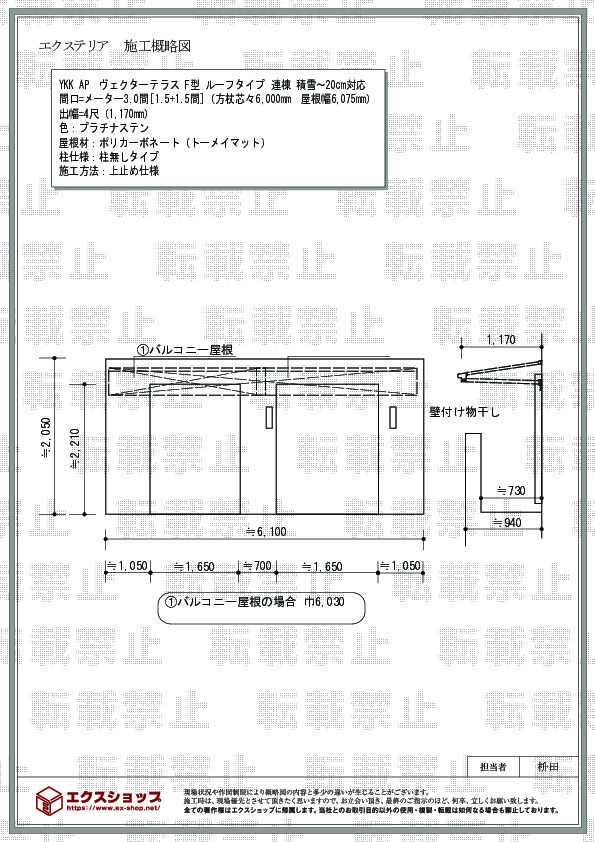 | サイズ | 屋根幅 6,075mm 出幅 1,170mm |